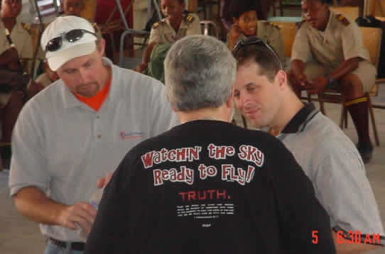 In another early morning meeting, trip coordinators Terry Craig of Book of Hope and Tim Zello, International Coordinator of Evangelism for Global Teen Challenge discuss upcoming ministry.
