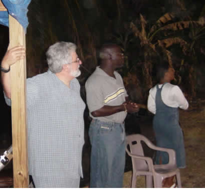 Barbados Teen Challenge ministers on the platform during the street meeting as I watch from the sound booth